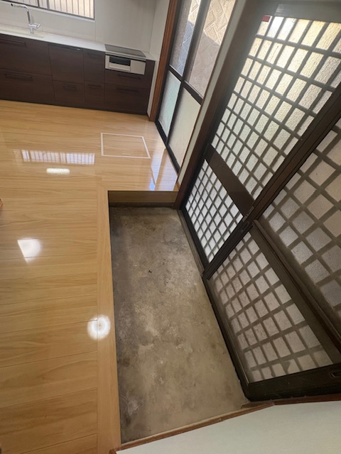 キッチン壁部分 配管床部分を解体、床下収納を造り、床の2重貼りで床施工